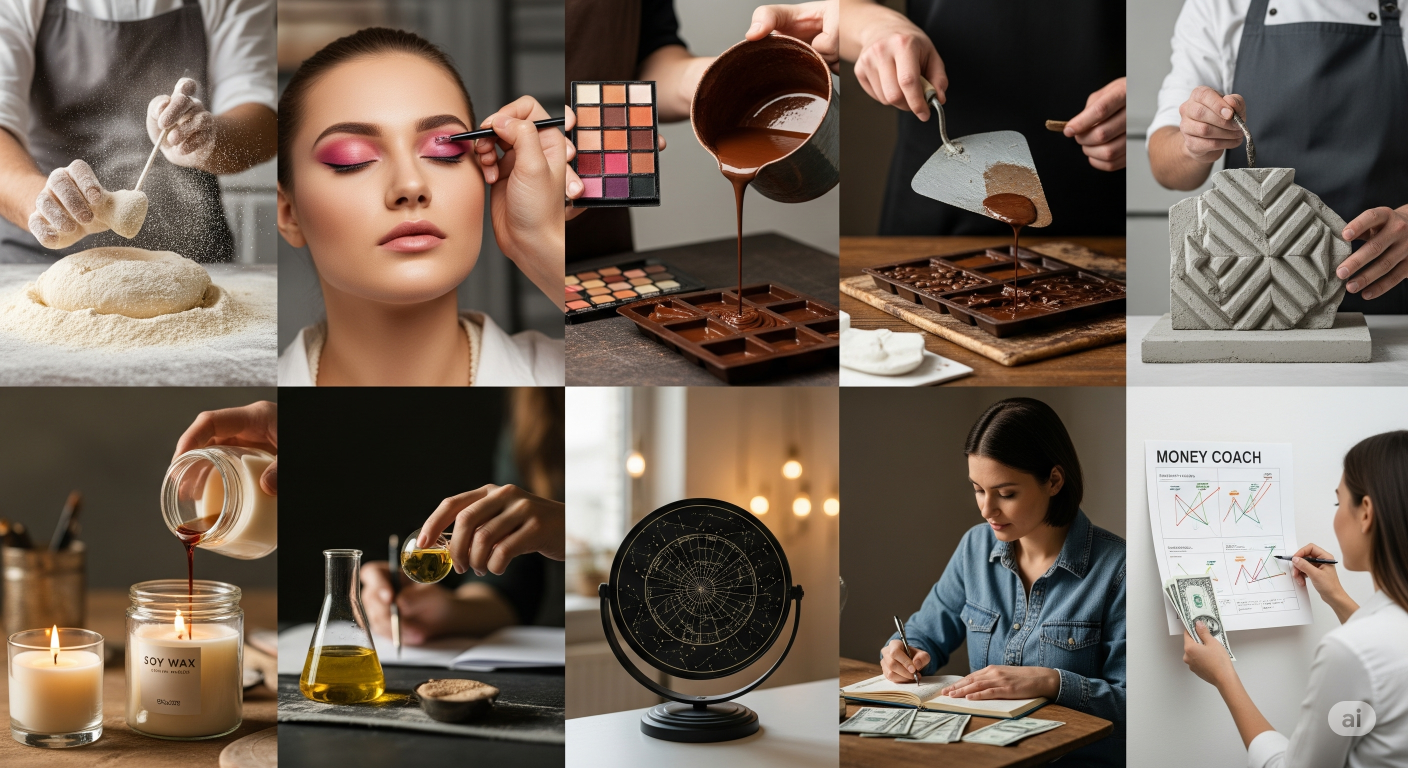 Some items such as concrete art, Soy candles ,Desserts, macs,Flowers and savoury products, which completely hand made with Love 💖